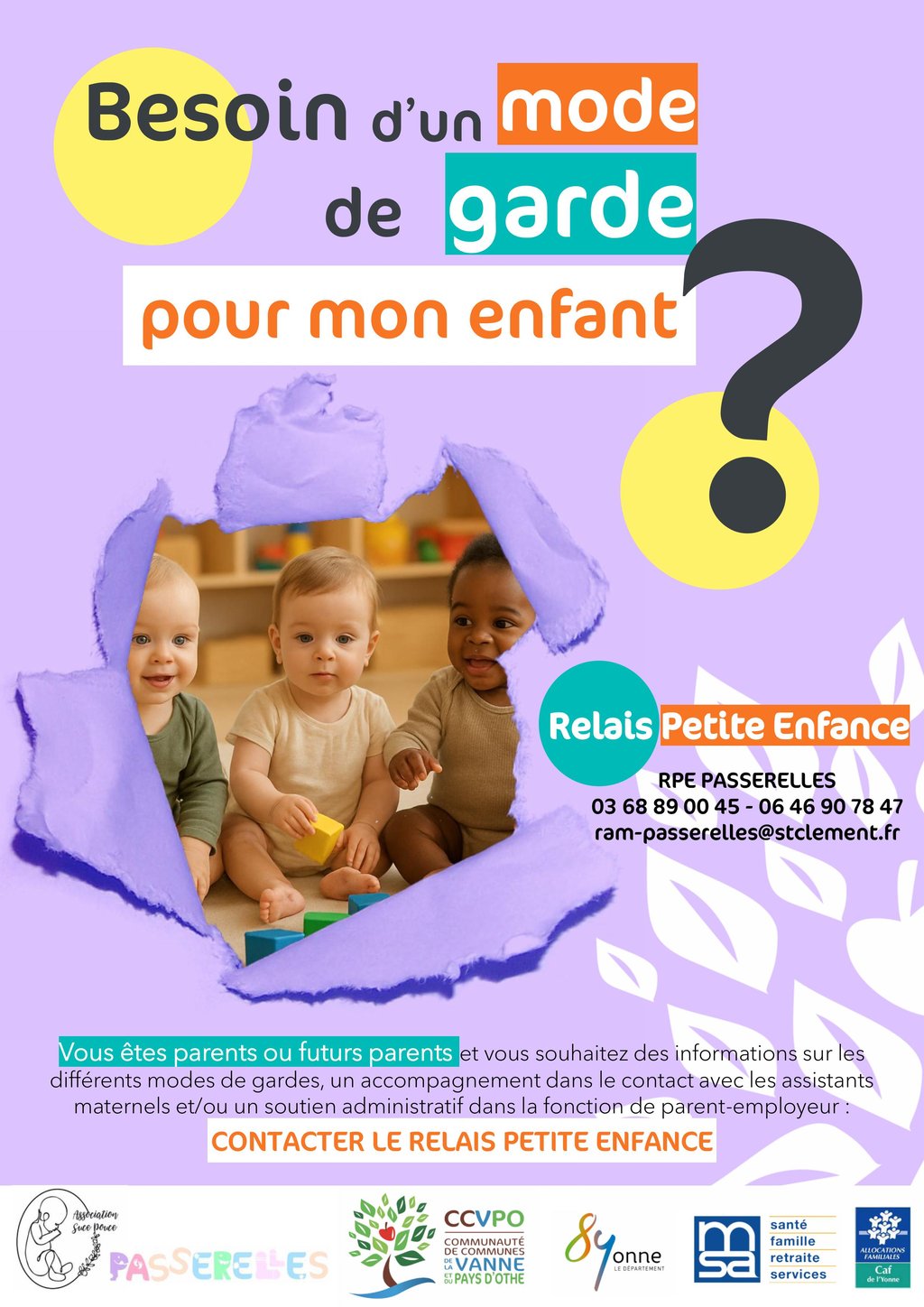 Pour en savoir plus ou être accompagné, contactez le Relais Petite Enfance.