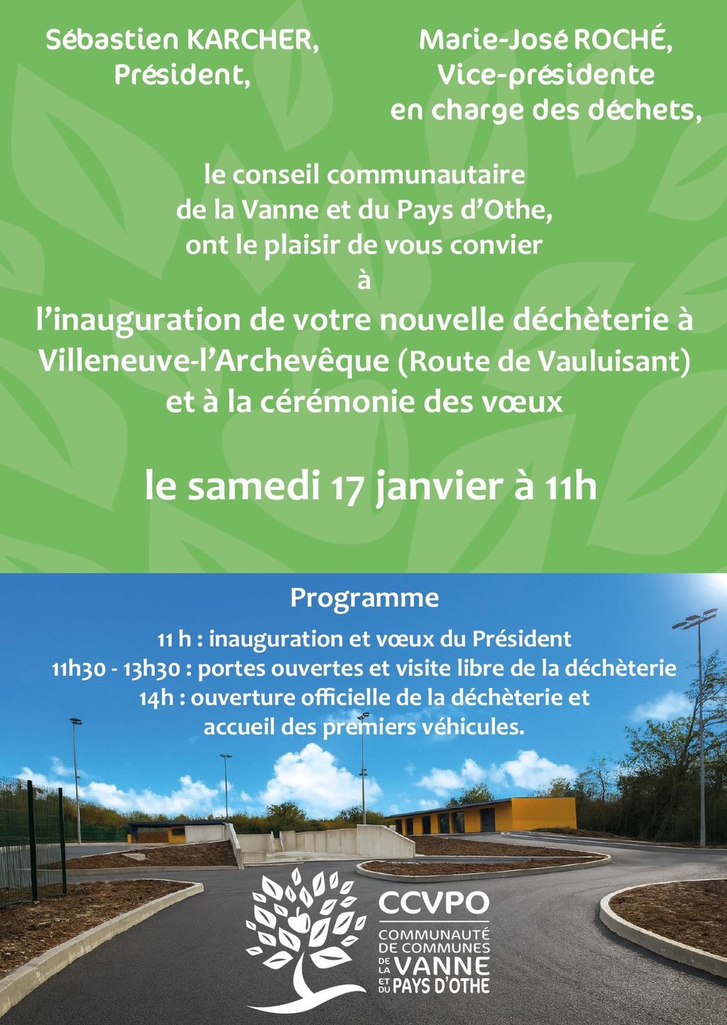 Retrouvons-nous le Samedi 17 Janvier à 11h00 pour l'inauguration de la nouvelle déchèterie de Villeneuve-l'Archevêque.