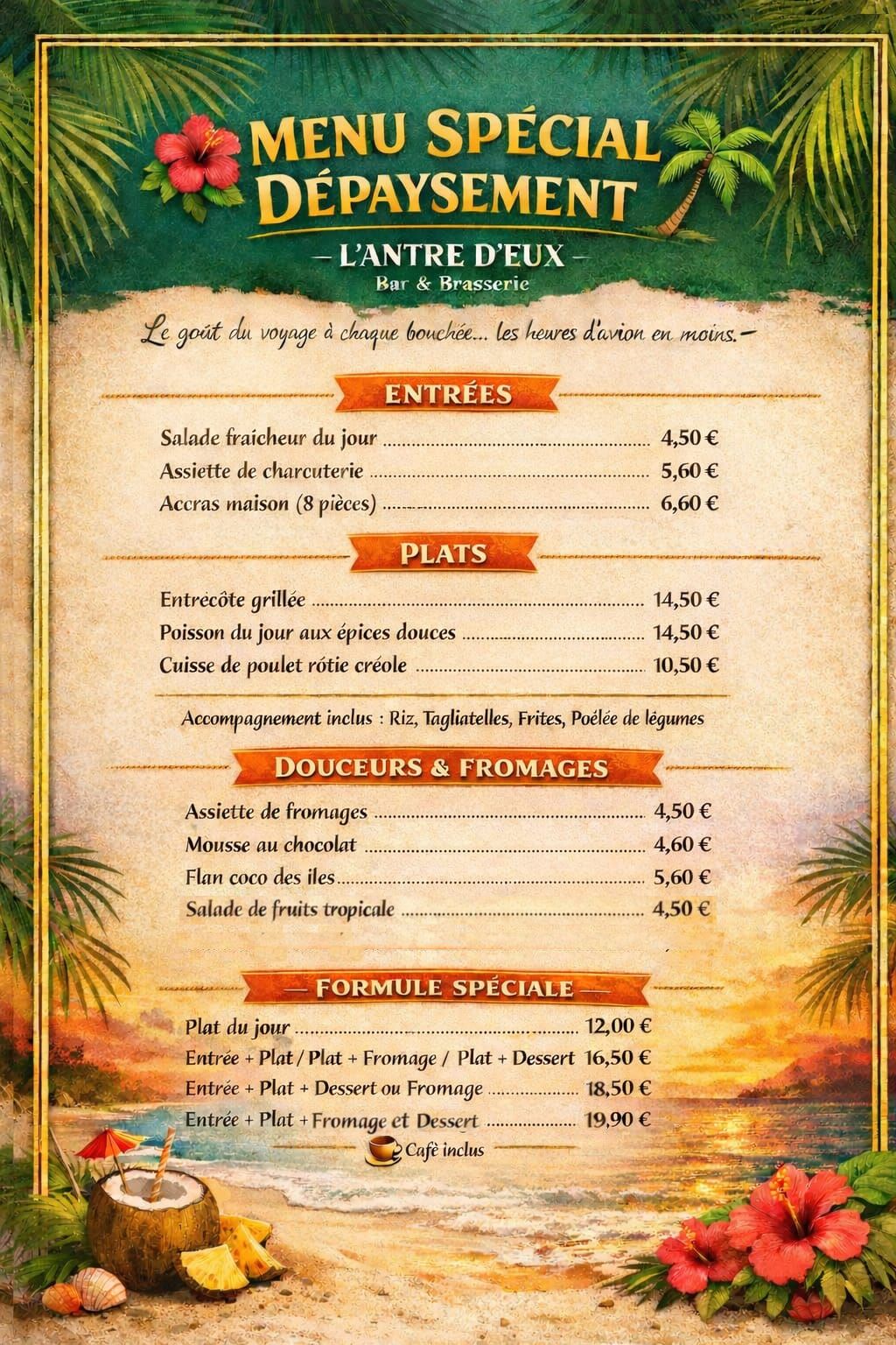 Menu de la semaine de l'Antre d'Eux