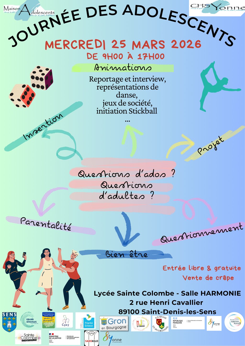 Parce que l’adolescence, c’est un tourbillon d’idées, de questions, d’émotions et de découvertes, nous vous donnons rendez-vous pour une Journée des Adolescents organisée par le CHS de l'Yonne.