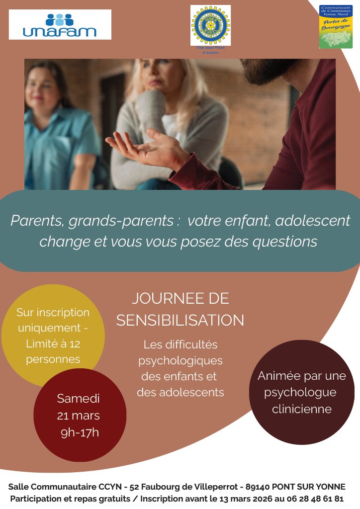 Participez à une Journée de sensibilisation sur les difficultés psychologiques des enfants et adolescents animée par une psychologue clinicienne.