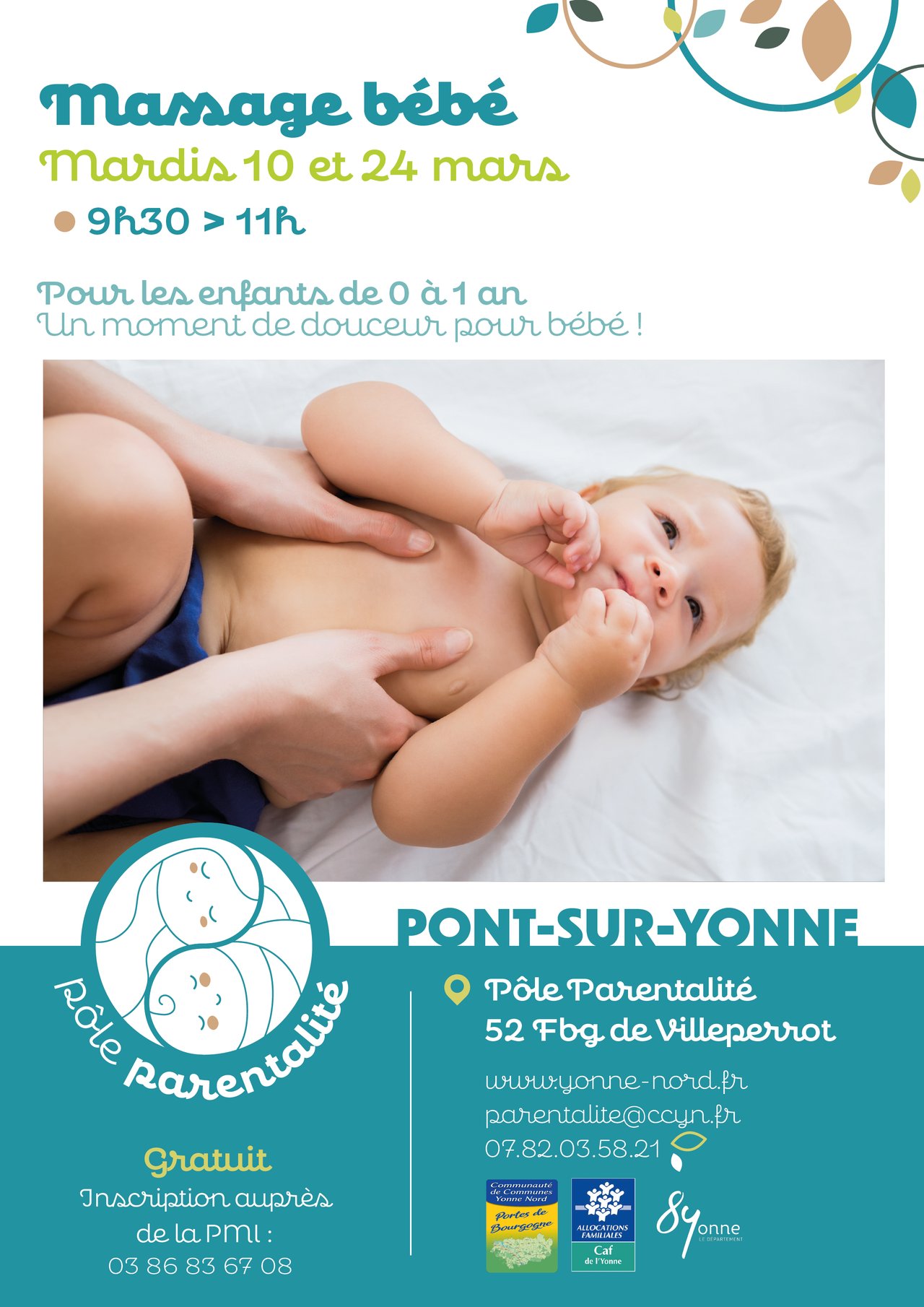 Le Pôle Parentalité vous propose des ateliers massage bébé animés par les professionnelles de la PMI.