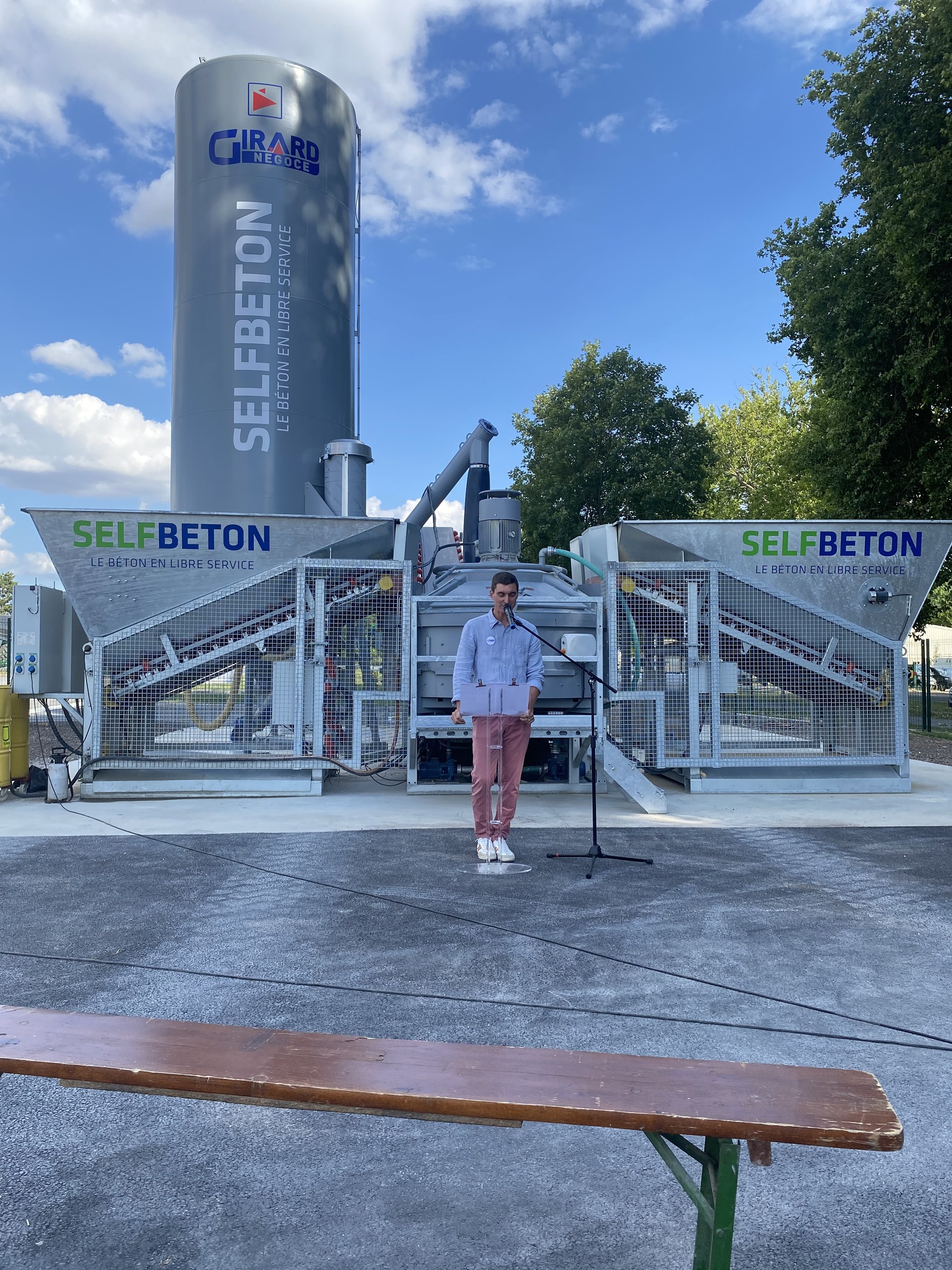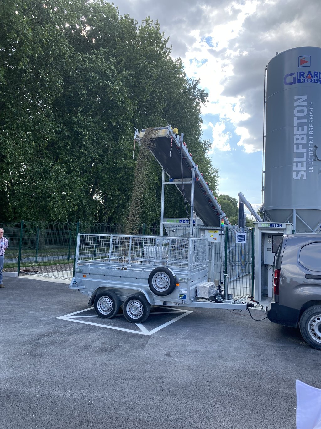 Distributeur à béton en libre-service pour les professionnels et les particuliers avec une borne d'achat et tous les renseignements nécessaires afin que les clients soient autonomes.