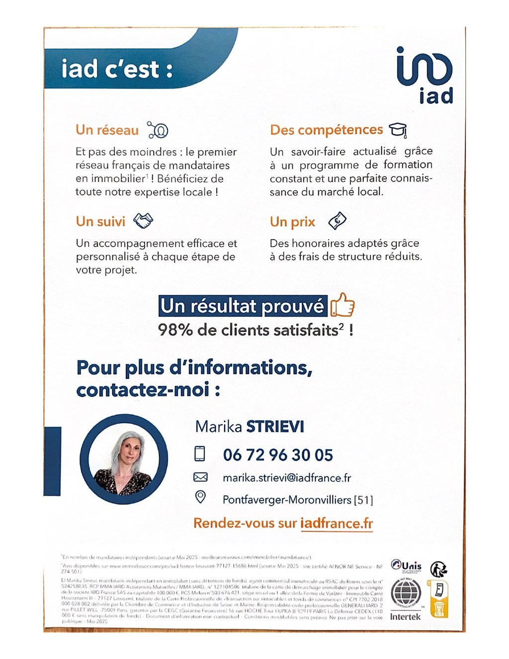 J'officie à ce titre en tant que conseillère immobilier iad à Pontfaverger-Moronvilliers. Je connais très bien ce secteur et ses particularités. Chaque jour, j'exerce avec passion et conviction ma profession de conseillère immobilier indépendante à Pontfaverger-Moronvilliers.