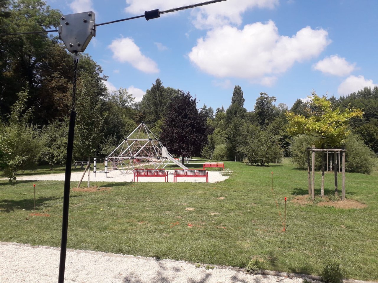 Un parc clôturé pour les enfants de 2 à 6 ans avenue de la Gare avec balançoires, tobogans….