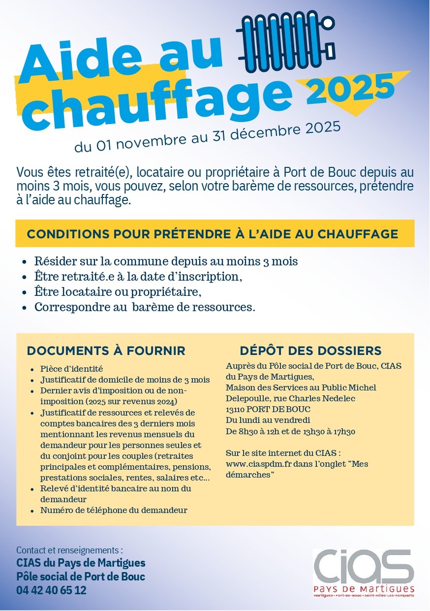 Le dépôt des dossiers se fera auprès du CIAS (au pôle social de Port de Bouc) à la Maison des Services au Public Michel Delepoulle.