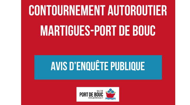 Le Préfet de la région Provence-Alpes-Côte d'Azur informe que l'enquête publique organisée du 29 septembre au 29 octobre 2025, dans le cadre de la procédure d’autorisation environnementale du projet de contournement routier de Martigues – Port-de-Bouc, est prolongée jusqu'au 13 novembre inclus.