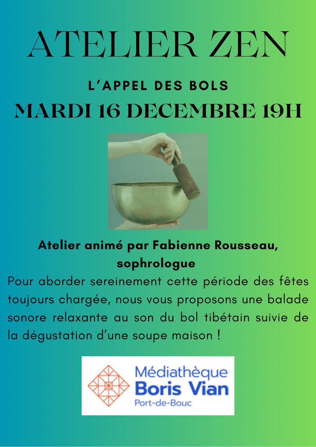 Pour aborder sereinement cette période des fêtes toujours chargée, nous vous proposons une balade sonore relaxante au son du bol tibétain suivie de la dégustation d’une soupe maison !