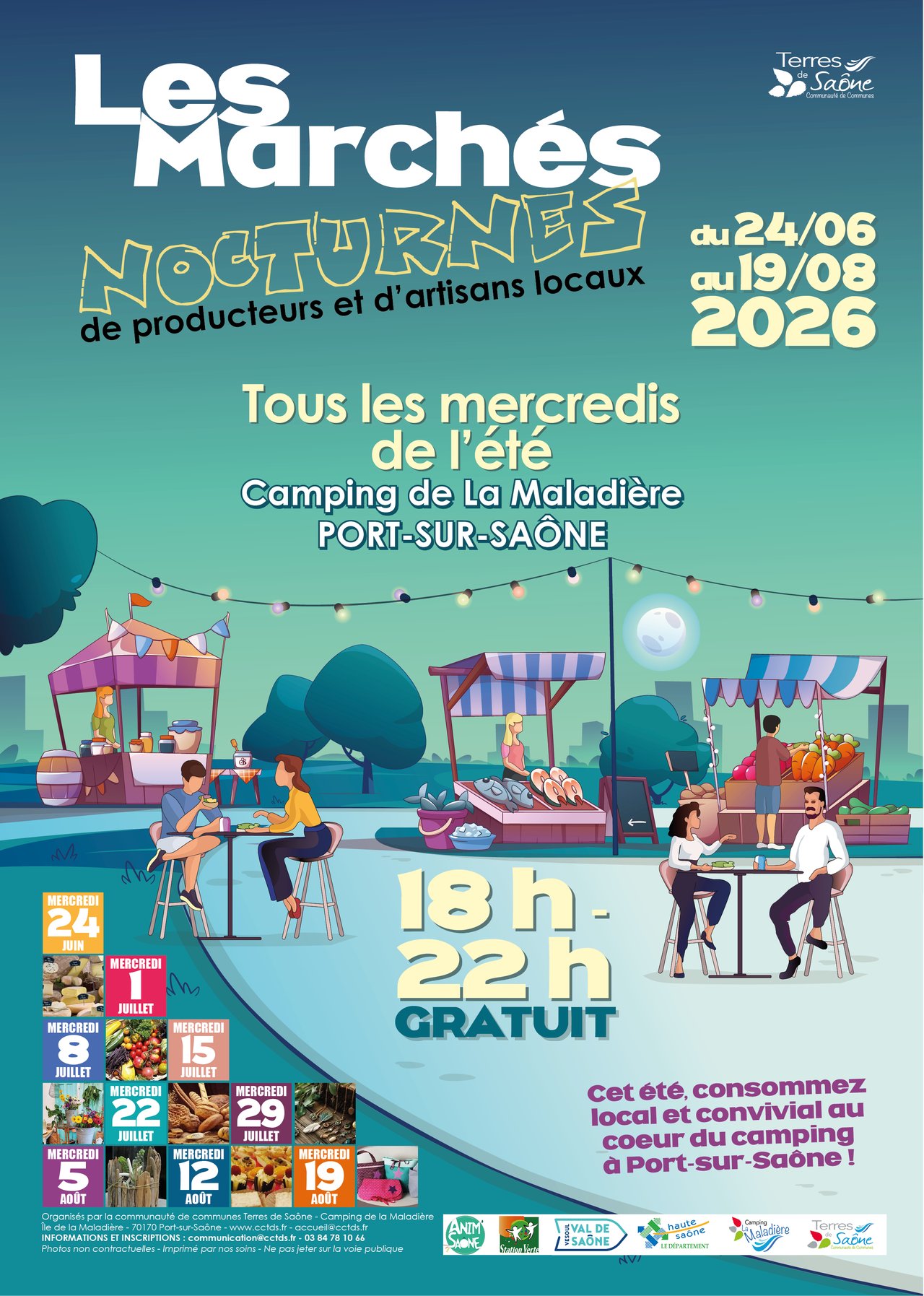 pourront flâner entre les stands de 18h à 22h. Le cadre naturel, en bordure de Saône, offre une