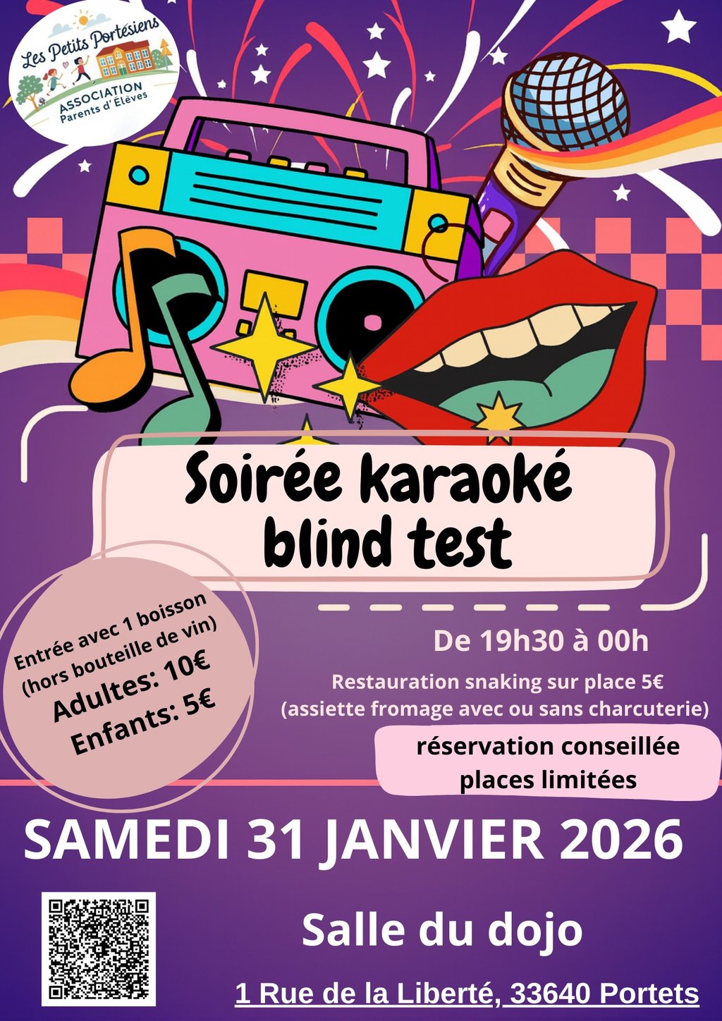 L'Association de Parents d'Élèves Les Minis Portésiens vous proposent une soirée karaoké le 31 janvier.