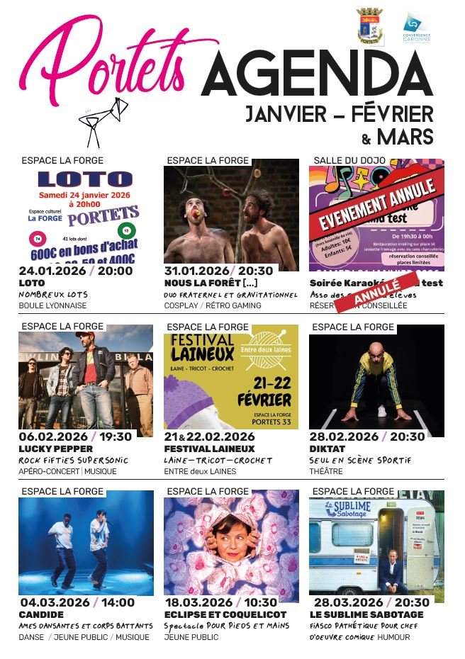 L'agenda de Portets pour les premiers mois de 2026 est disponible.