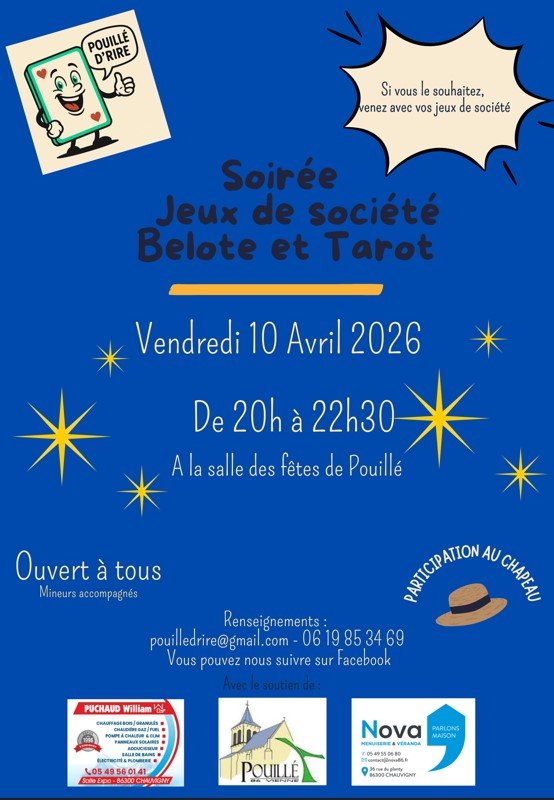 L'association Pouillé de rire vous invite à participer à sa soirée de jeux de société,