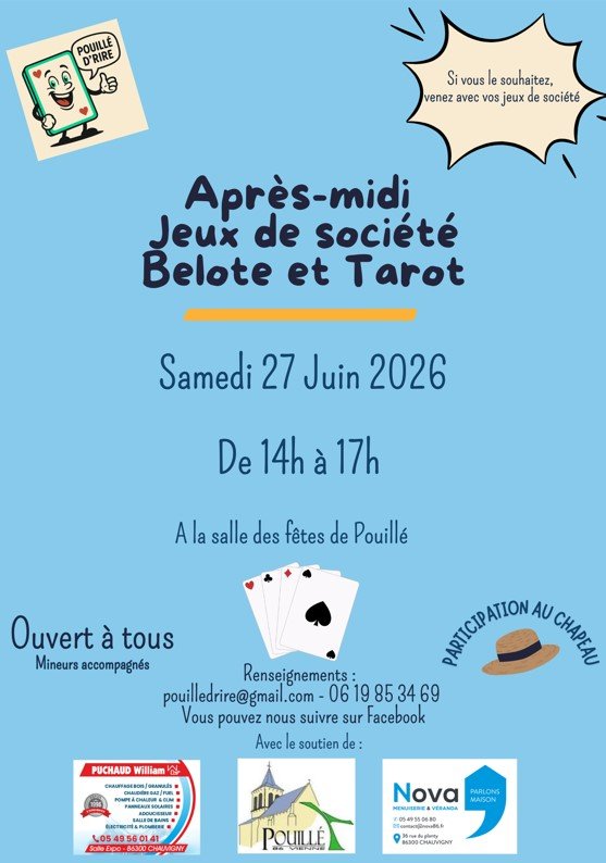 L'association Pouillé d'rire vous invite à participer à son après-midi de jeux de société, belote et tarot