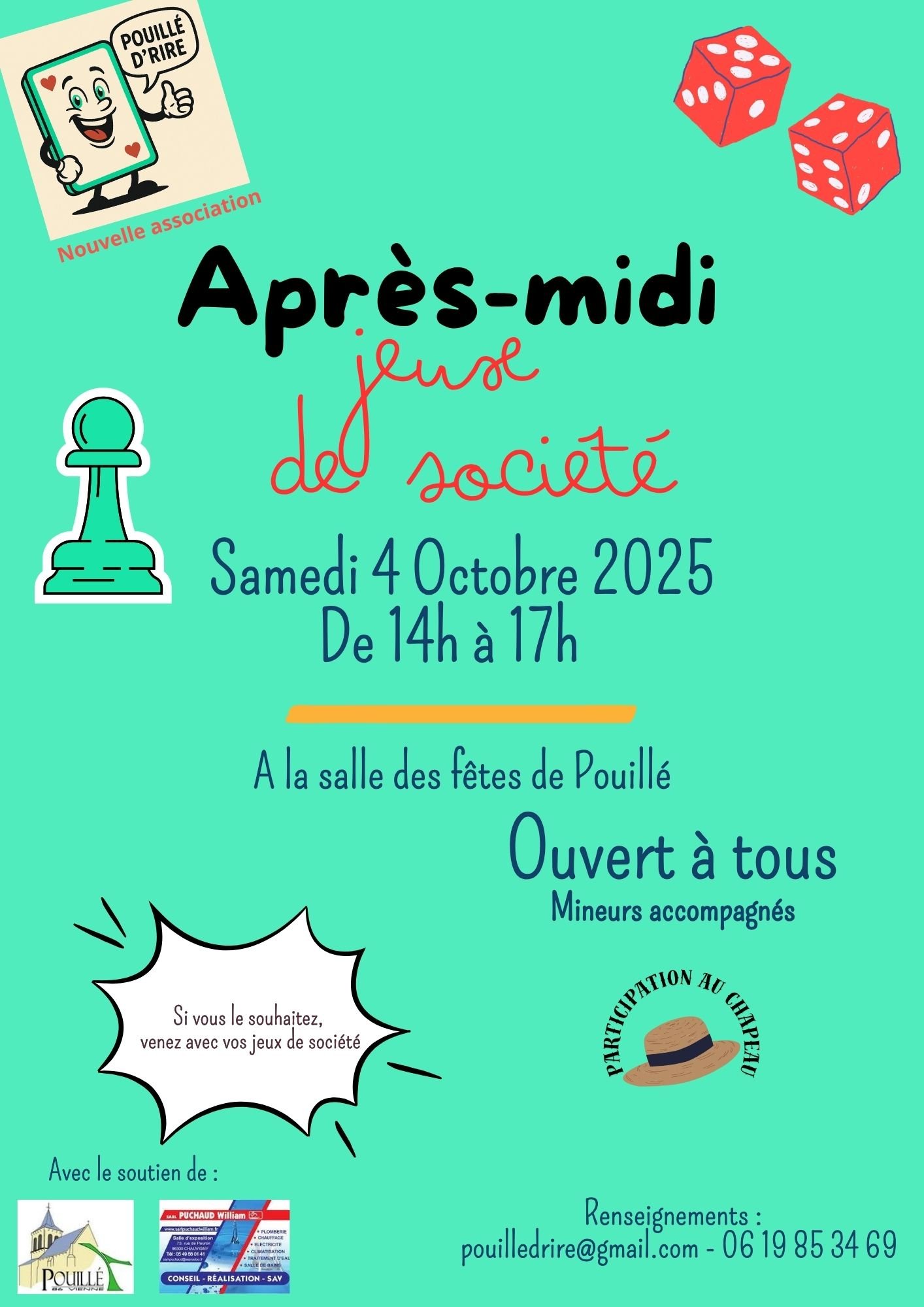 La toute nouvelle association Pouillé d'rire a pour objet de créer et tisser des liens sociaux au sein de notre commune, dans un premier temps à travers des jeux de société, et dans un second temps d'activités manuelles et de randonnées de loisirs.