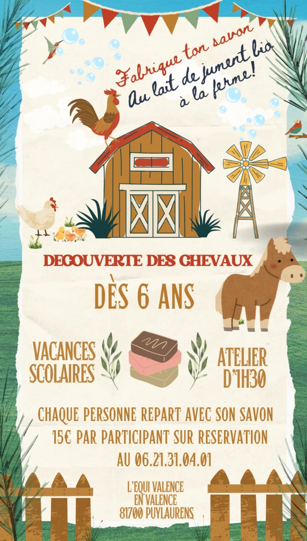 Atelier d'1h30/ 15 € par pers. sur réservation au 06.21.31.04.01.