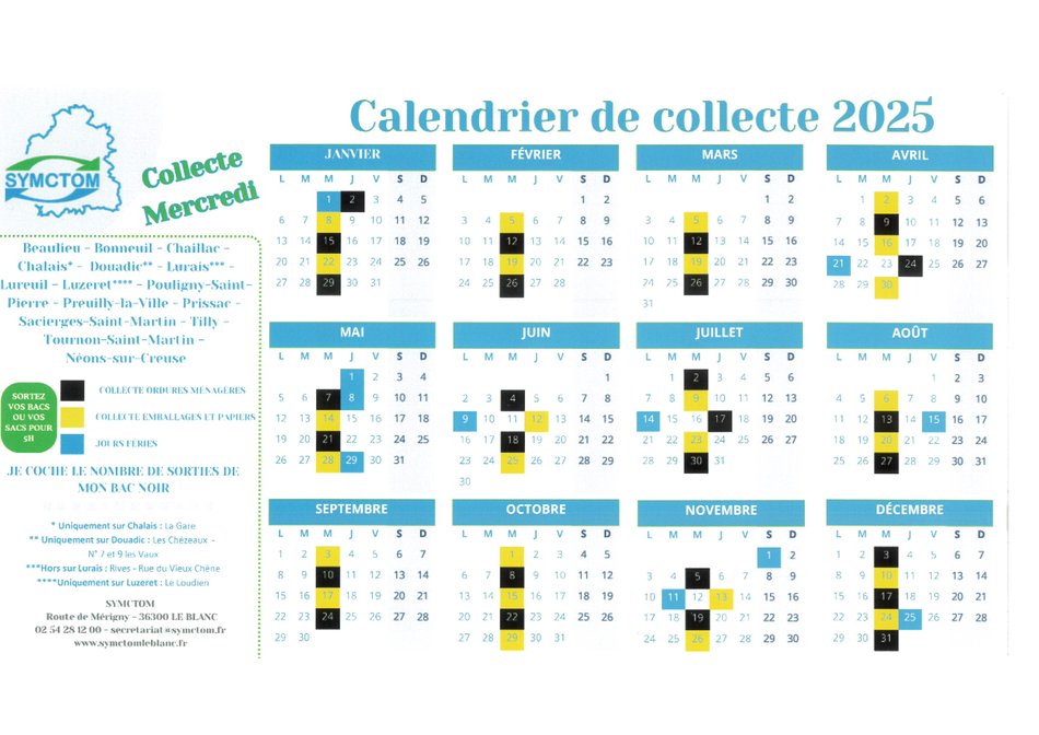 CALENDRIER DE COLLECTE SYMCTOM ANNÉE 2025