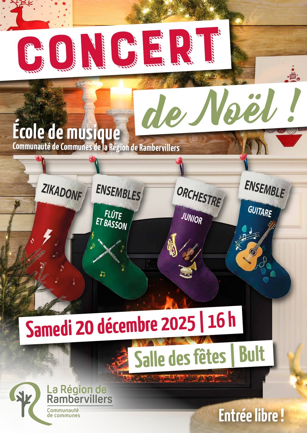 Le concert de Noël de l'école de musique se tiendra le samedi 20 décembre 2025 à 16h à la salle des fêtes de Bult.