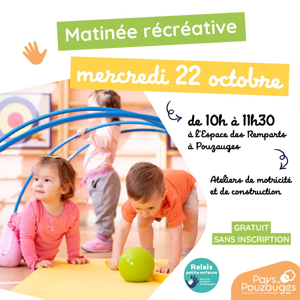 👶Le service aux familles de la Communauté de communes organise une matinée récréative ouverte à toutes les familles :