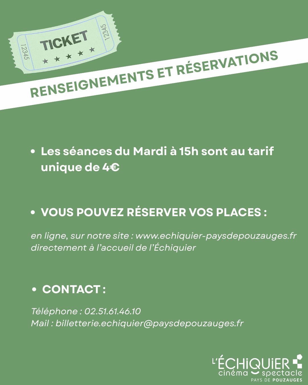 🎟️ Billets et horaires sur notre site ou directement à l’accueil de L’Échiquier.