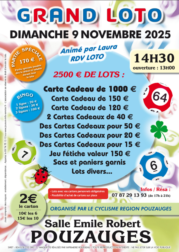 Grand loto organisé par le Cyclisme Région Pouzauges