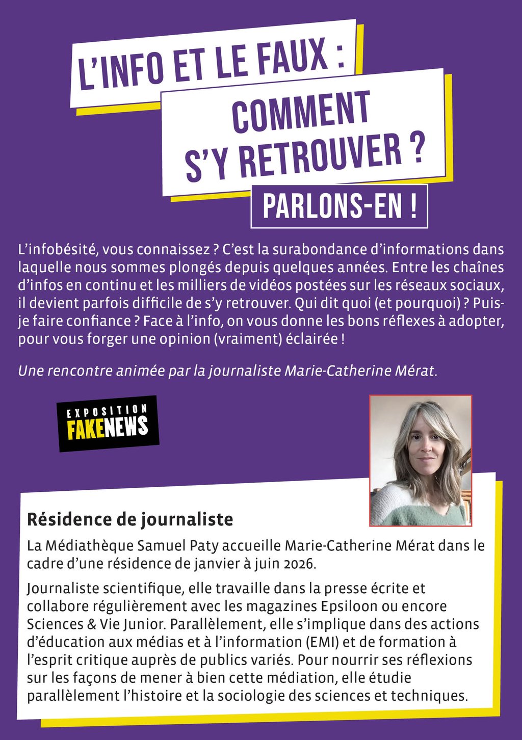 Une rencontre animée par la journaliste Marie-Catherine Mérat. Dans le cadre de l'exposition Fake News.