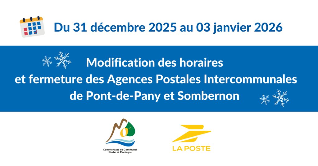 MODIFICATION DES HORAIRES ET FERMETURE AGENCES POSTALES INTERCOMMUNALES - 31 DÉCEMBRE AU 03 JANVIER