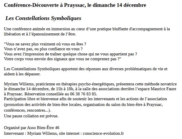 L'association Bien-Être 46 organise une conférence-découverte à Prayssac → "Les Constellations Symboliques"