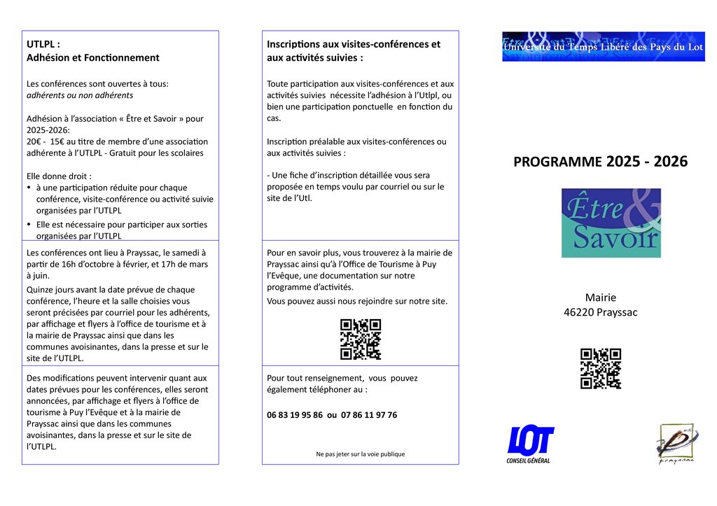 Être & Savoir / L'Université du Temps Libéré des Pays du Lot organise une conférence !
