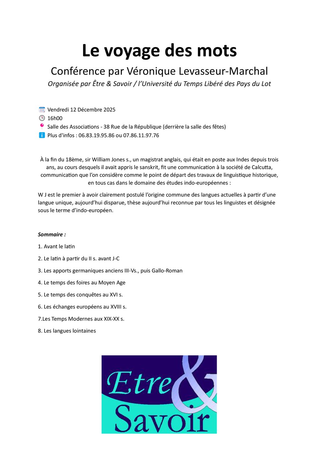 Conférence UTL "Le Voyage des Mots" - Vendredi 12 Décembre 2025 🔠🧳