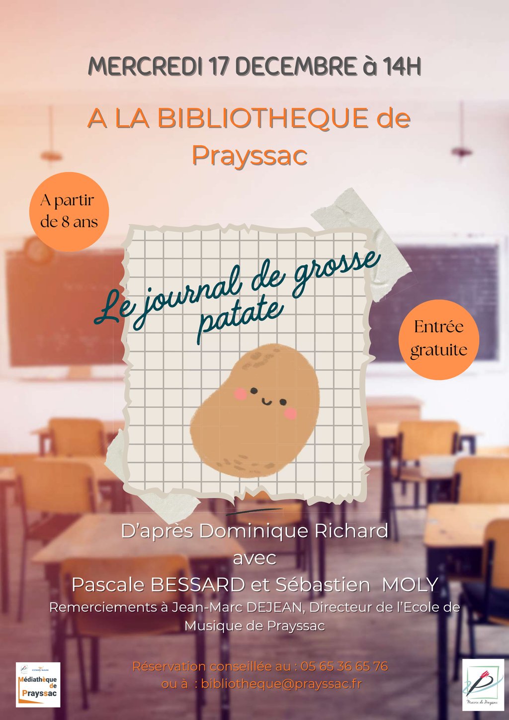 La Bibliothèque de Prayssac organise, avec Pascale Bessard et Sébastien Moly, une lecture musicale de "Le Journal de Grosse Patate" d'après Dominique Richard !