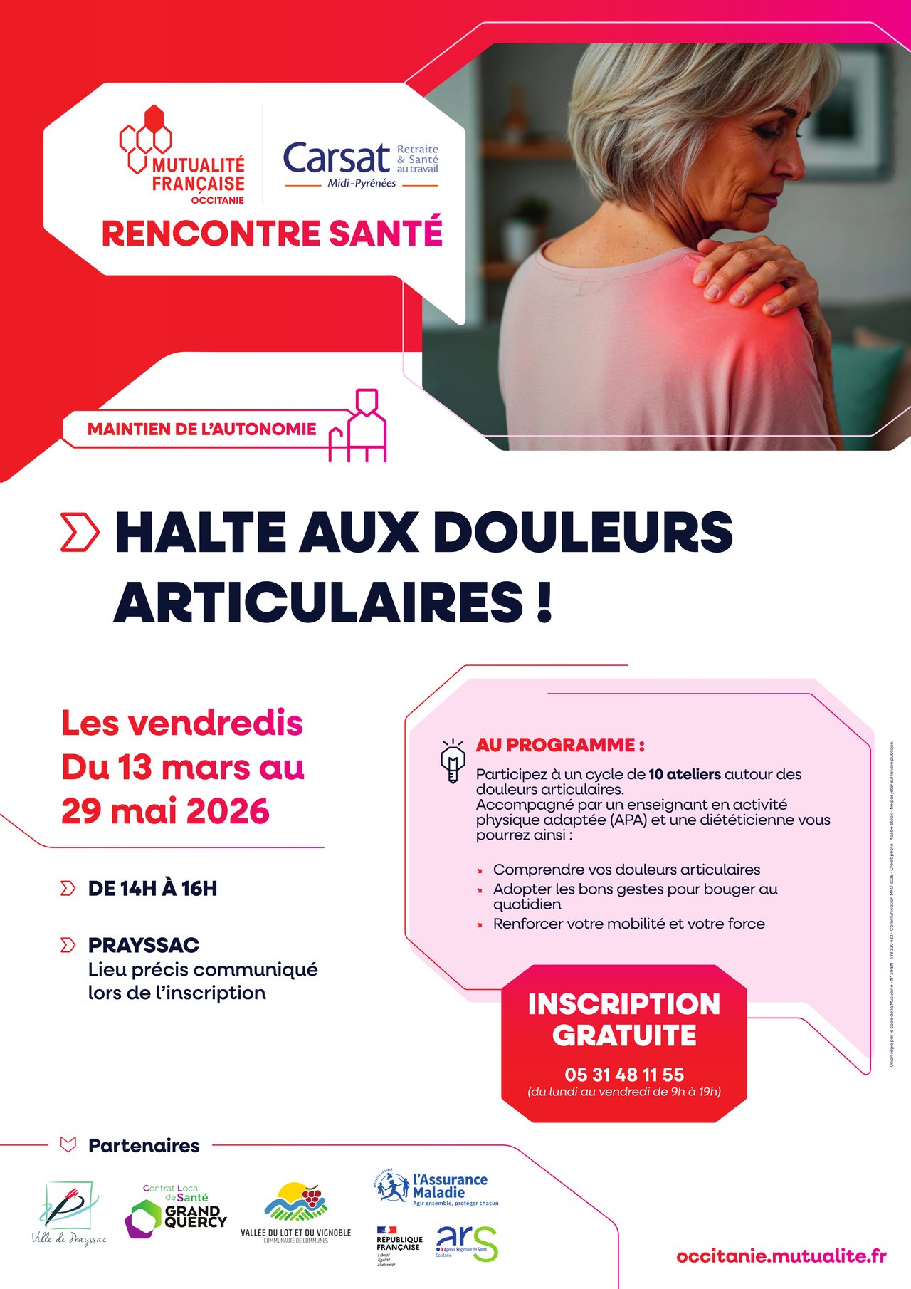 Rencontre Santé 'Douleurs Articulaires' - Carsat & Mutualité Française - les Vendredis de Mars à Mai 2026 🤝💚