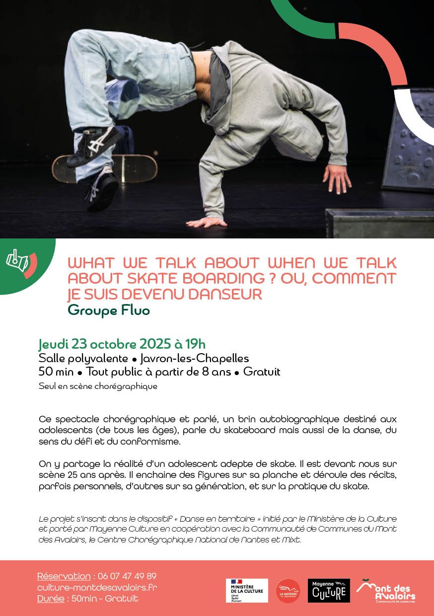 👉 Réserver ses places pour le spectacle : https://culture-montdesavaloirs.fr/agenda/340-What-we-talk-about-when-we-talk-about-skate-boarding-Ou-comment-je-suis-devenu-danseur