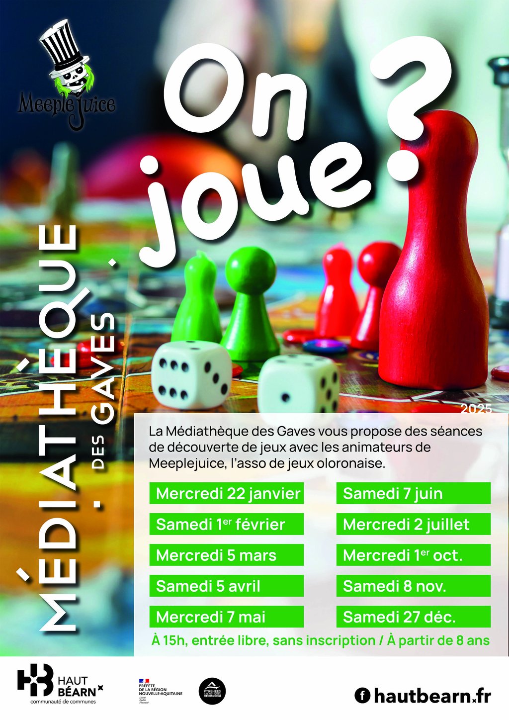 Tout au long de l'année, la médiathèque vous propose des séances de découverte de jeux avec les animateurs et animatrices de l'association Meeplejuice.