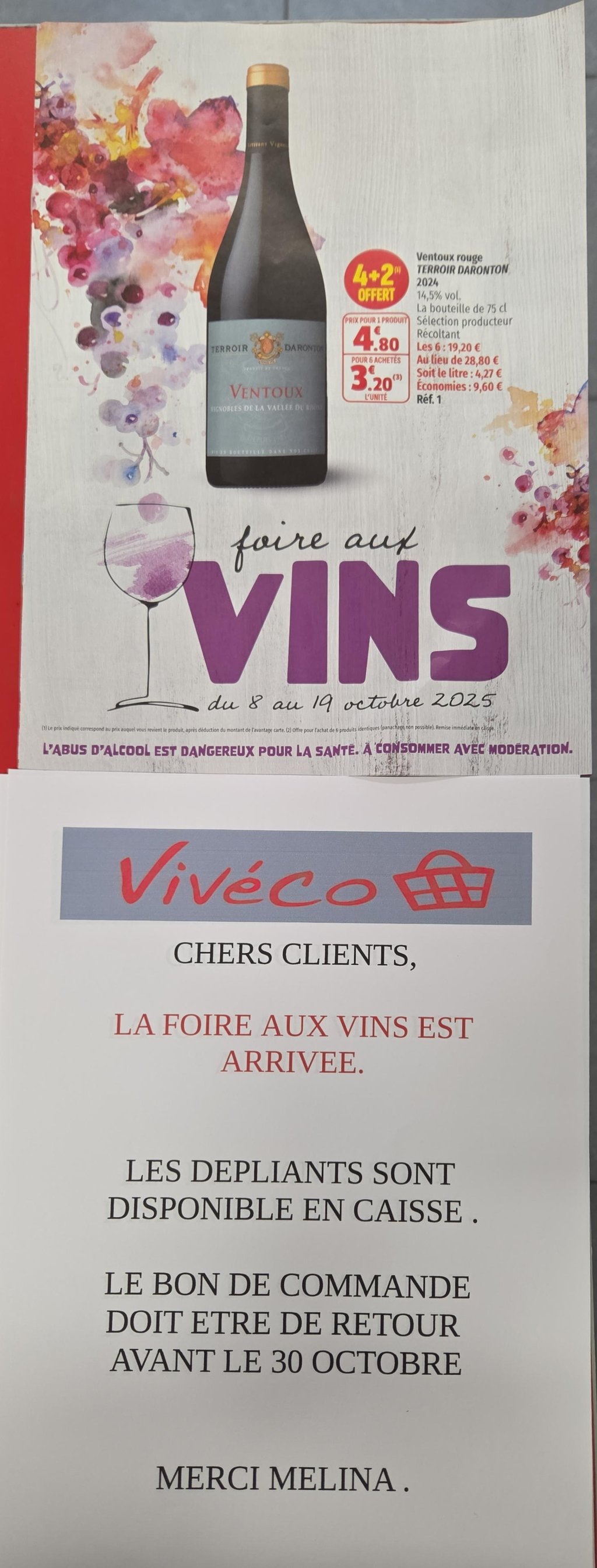 Mélina du VIVECO de Laigné vous propose une foire aux vins du 8 au 19/10/25.