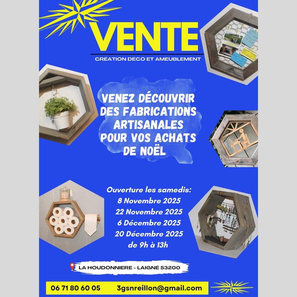 Gilles REILLON artisan menuisier, propose une vente de créations artisanales pour vos achats de Noël.