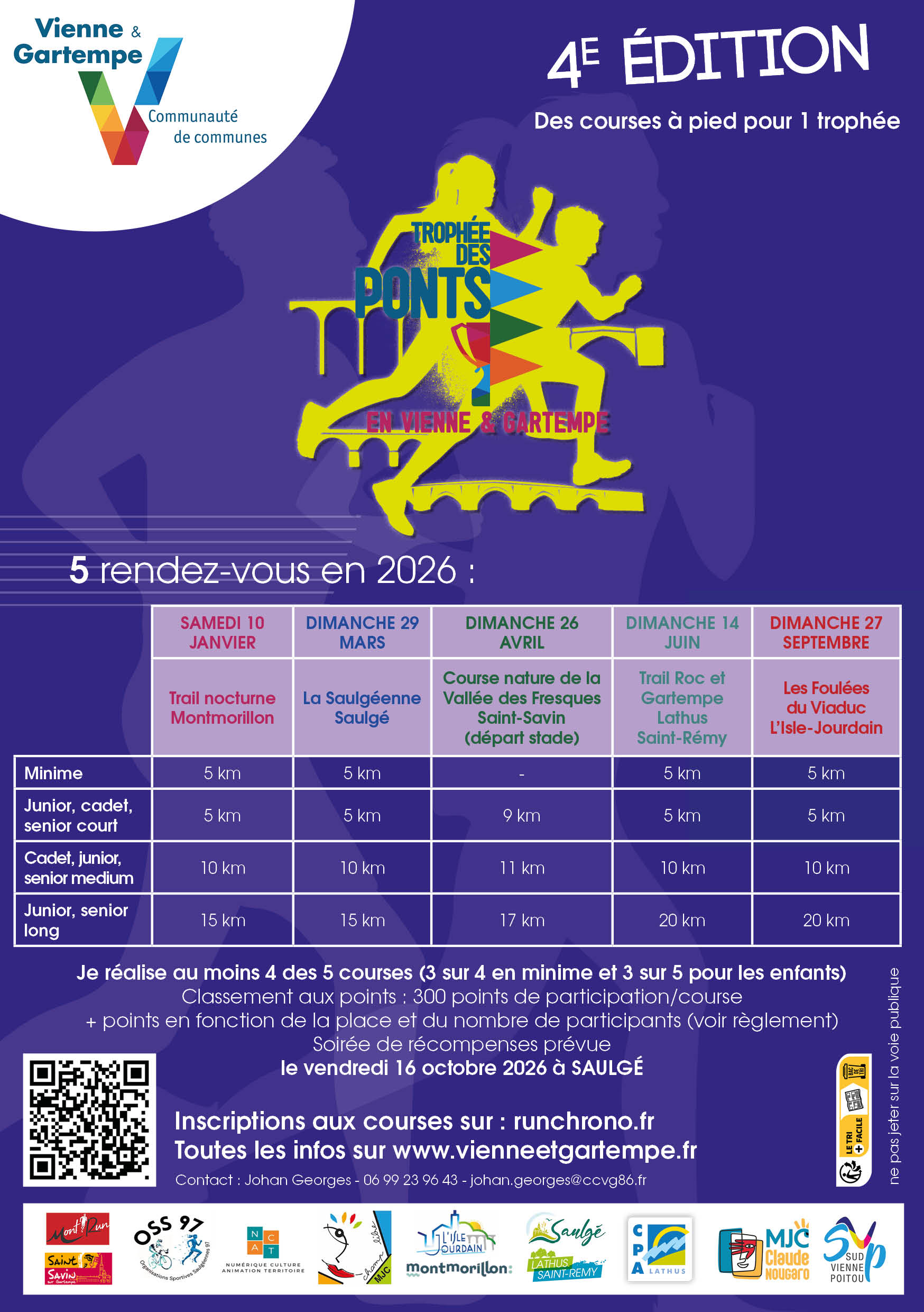 - le dimanche 26 Avril 2026 : la Course Nature de la Vallée des Fresques organisée par NCAT à Saint-Savin,