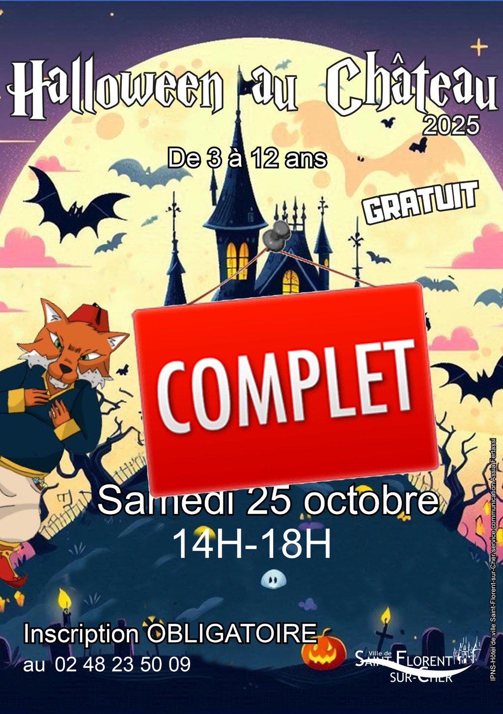 Nous sommes désolés de vous annoncer que les inscriptions pour l’animation d’Halloween de samedi sont désormais complètes.