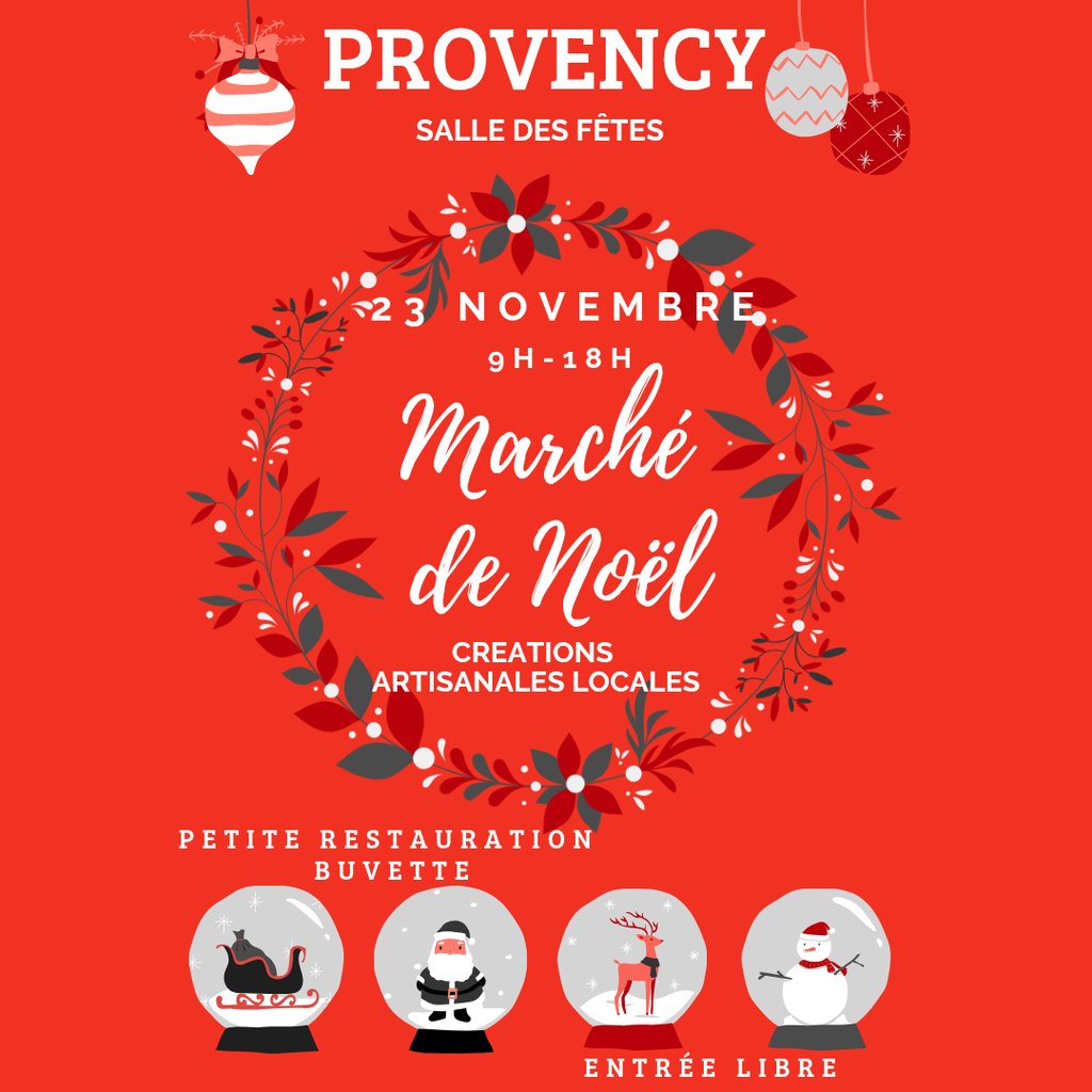 Le Club de l’amitié de Provency a le plaisir de vous annoncer l’organisation du marché de Noël. Buvette et petite restauration. Créations artisanales locales.