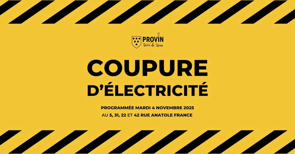 Nous vous informons qu’une coupure de courant programmée aura lieu le mardi 4 novembre aux adresses suivantes : 5, 31, 22, et 42 𝗿𝘂𝗲 𝗔𝗻𝗮𝘁𝗼𝗹𝗲 𝗙𝗿𝗮𝗻𝗰𝗲.