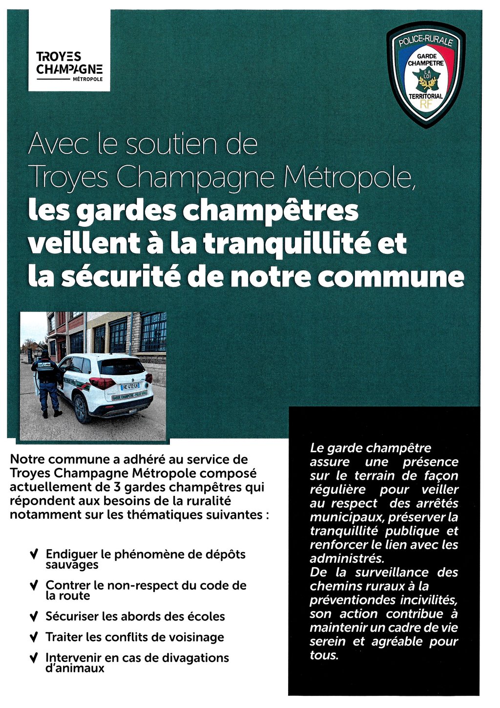 La commune bénéficie du service des gardes champêtres de Troyes Champagne Métropole.