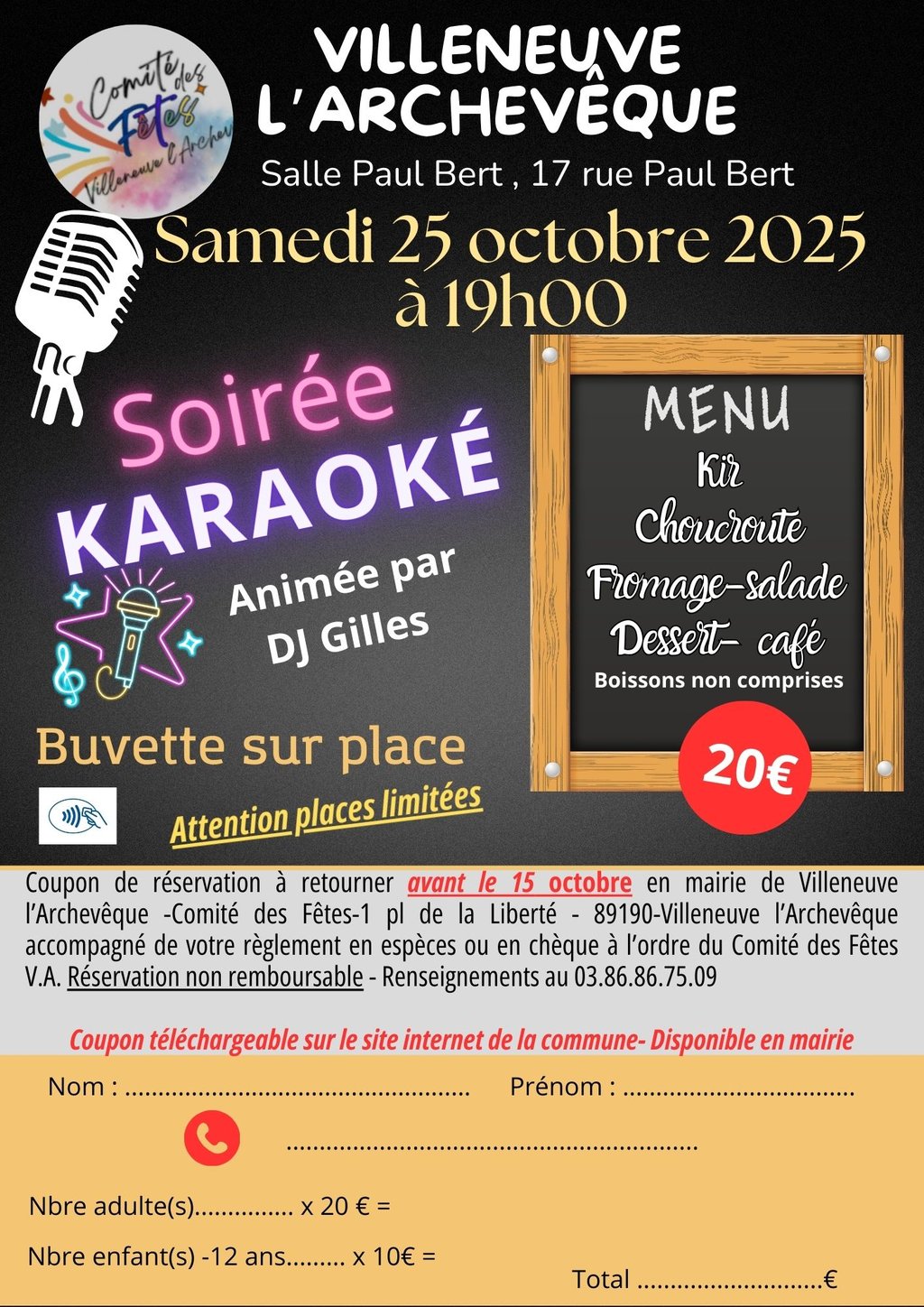 Soirée choucroute KARAOKÉ - samedi 25 octobre 2025 à 19h00- SAlle Paul Bert