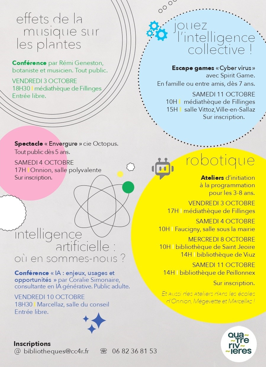 Rendez-vous dans les bibliothèques du réseau pour des Conférences, Spectacles, Ateliers Escape games