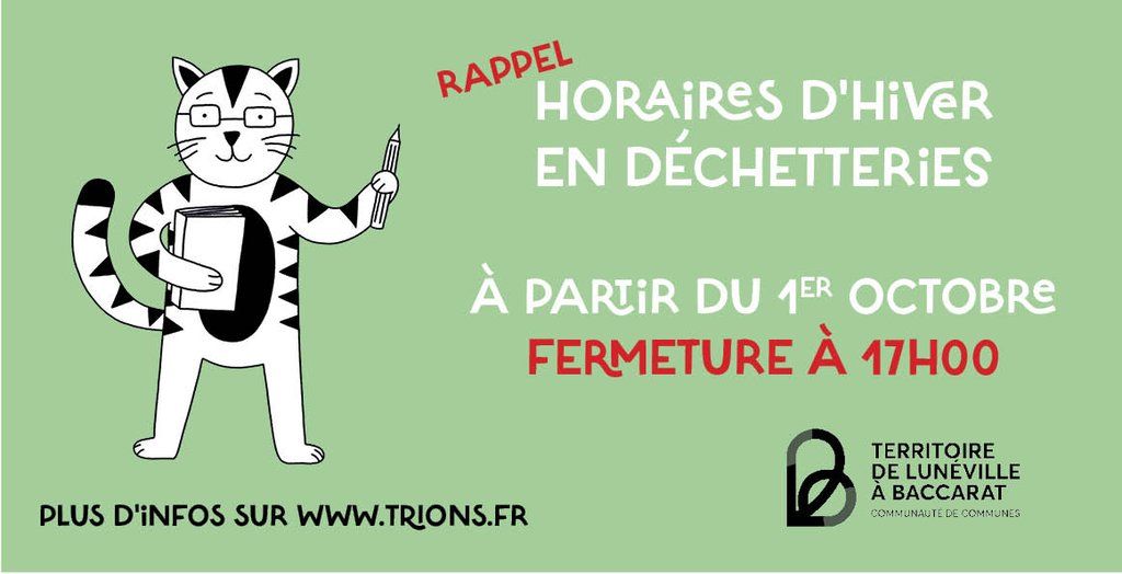 À partir du 1er octobre, vos déchetteries de Lunéville, Bénaménil et Baccarat passent aux horaires d’hiver ⏰❄️