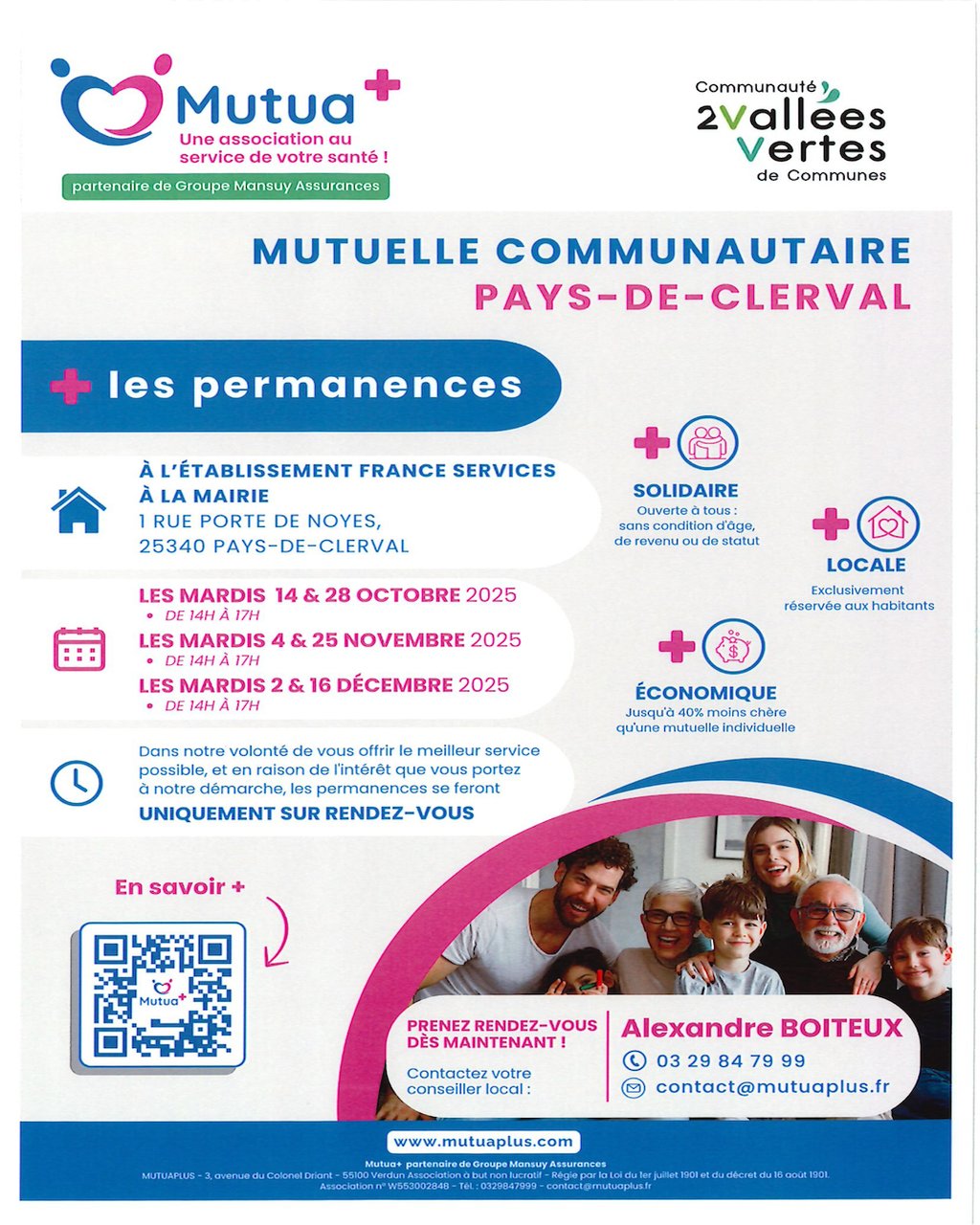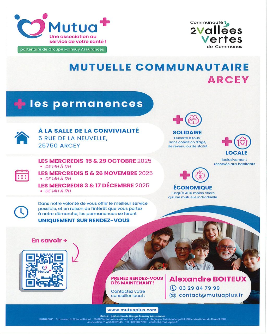Pour celles et ceux qui n’ont pas pu y assister, des permanences sur rendez-vous sont proposées dans les centres bourgs du territoire. Alexandre Boiteux, conseiller MUTUA +, vous permettra de :