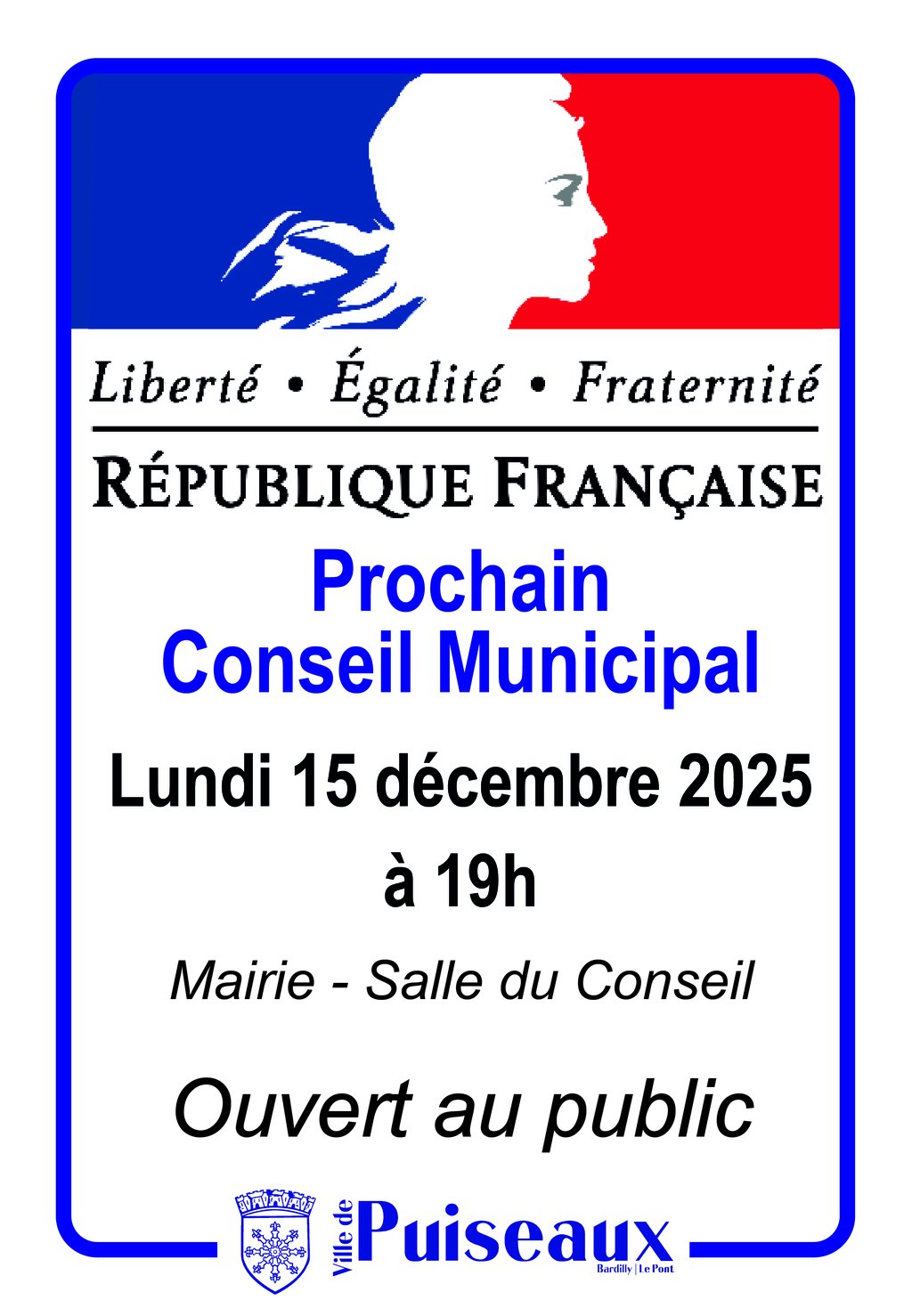 Le prochain conseil municipal aura lieu le lundi 15 décembre 2025 à 19h00 à la mairie en salle du conseil municipal.