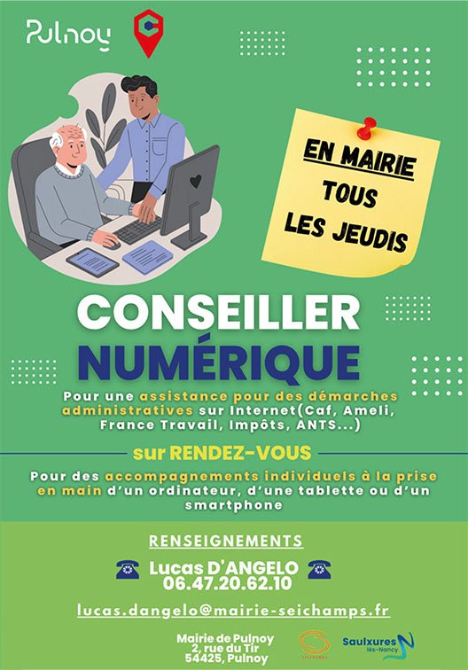 Chaque jeudi, Lucas d'Angelo, conseiller numérique, assure une permanence en mairie de Pulnoy.
