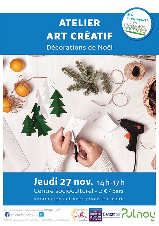 Dans le cadre de son programme d'animations intergénérationnelles Et si on partageait ? et à l'approche des fêtes de fin d'année, la Ville de Pulnoy propose un atelier créatif sur le thème des décorations de Noël.