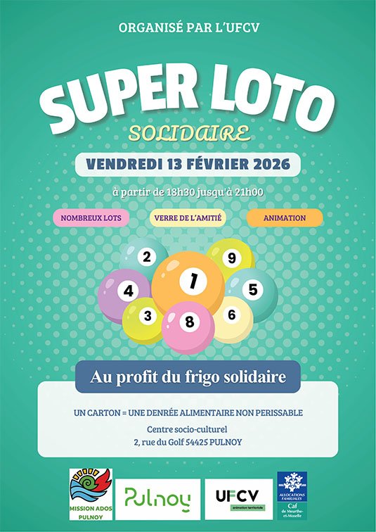 Vendredi 13 février, l'UFCV organise un loto au profit du frigo solidaire.