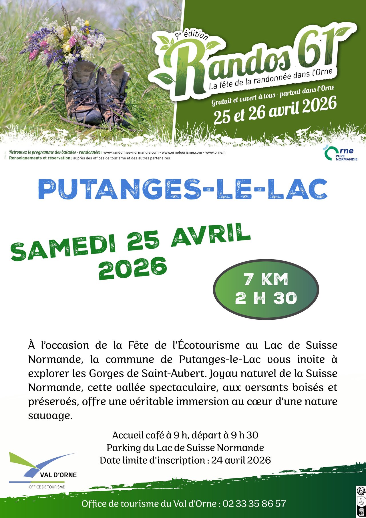 À l’occasion de la Fête de l’Écotourisme au Lac de Suisse Normande, la commune de Putanges-le-Lac vous invite à explorer les Gorges de Saint-Aubert. Joyau naturel de la Suisse Normande, cette vallée spectaculaire, aux versants boisés et préservés, offre une véritable immersion au cœur d’une nature sauvage. Randonnée de 7 km (2h30)