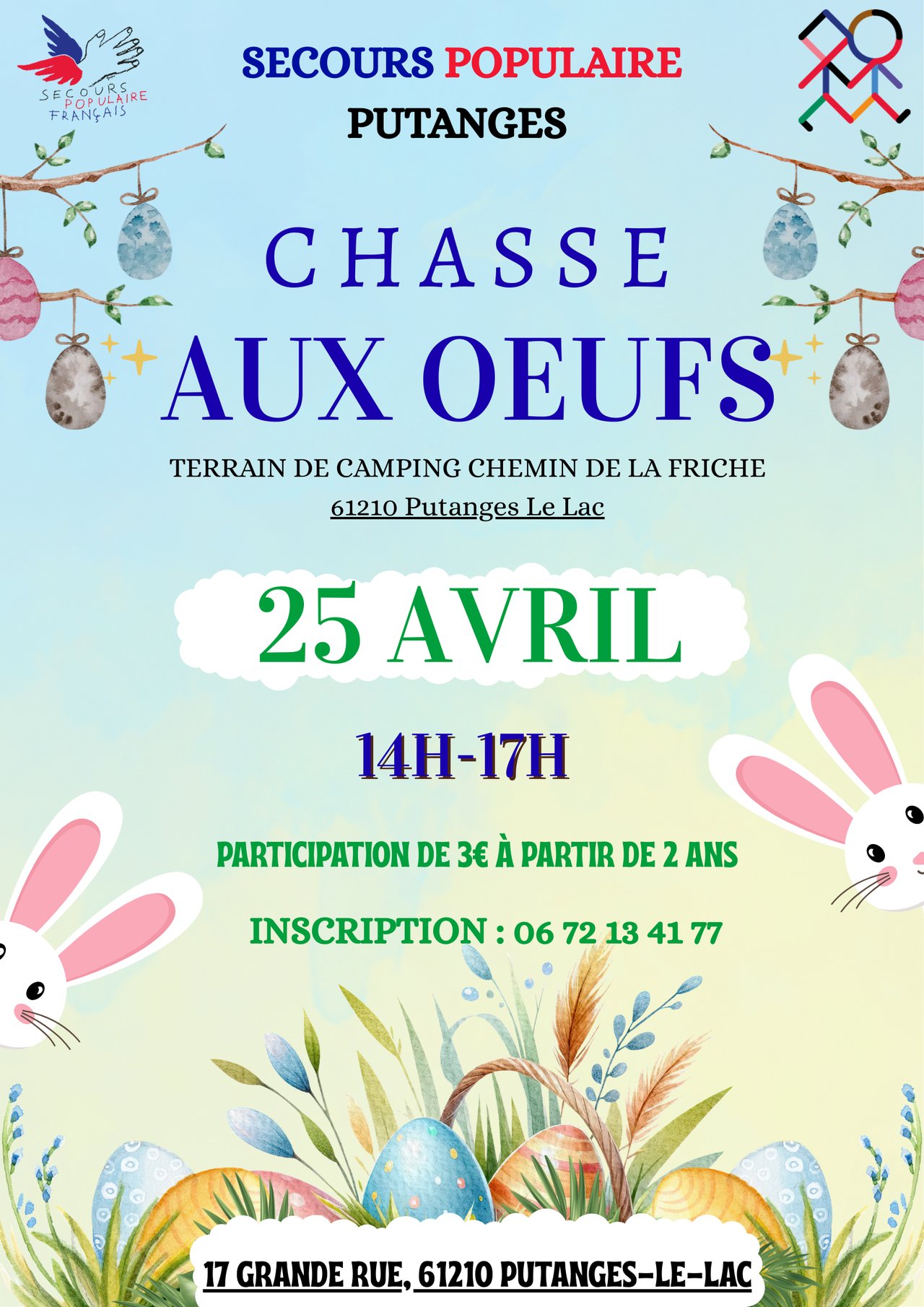 Chasse aux œufs au terrain de camping, organisée par le secours populaire de Putanges.